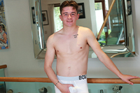 Nathan is one of these young straight men who is happy to earn a little money from showing off his body and he isn’t too bothered if you want to see it; touching is a whole different story, but you can watch him strip down to his tight shorts in the sunshine and enjoy the wind blowing round his balls which seems to stimulate his uncut cock to rise up nice and hard! Nate is about as comfortable out of his clothes as in them and like us all he is never happier than when playing with his cock. When you chat to him he just casually caries on playing and he discovered that the wind feels just as good blowing round his hole as round his balls, this lad is not shy about showing off his hole, which is curiously shaved! After lots of teasing and foreplay he lies down and squirts a pretty impressive loads that blasts and splats onto his abs! Click here to see the shoot