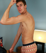 Simon is a young straight lad born in Lithuania, who has lived the bulk of his life in London. He’s very tall, and lean with it – he towers above me – but the most important thing is that he is built in proportion! As we see in this photo shoot, he is more than adequately endowed! Simon is a good looking lad, not very smiley, but confident and easy going, and this shoot was really easy – he was happy to strip, show off his defined body, and got hard really easily. His solid uncut cock looks great, and looks even greater when is shoots a large load over his abs! Click here to see the shoot
