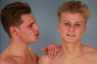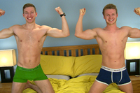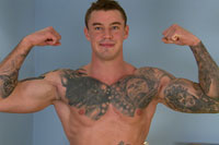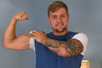Horned up Jason Maddox is on the hunt when he notices leather-stud Nick Sterling wandering aimlessly in the sex club. Nick strokes, inviting Jason over to grab a handful of his succulent ass. After being roughed up by Jason, Nick buries his scruffy face into Jason’s bulge and takes a few deep sniffs before fishing his thick cock out with his talented mouth. Locking Jason’s cock in handcuffs, Nick slaps Jason’s rod making Jason slap him back. Nick gets on his back and gives Jason’s throat an oral pounding. The heat rises as Nick bends over and Jason eats his firm, round ass in a rough and dominating manner. With the handcuffs still gripped around his throbbing cock, Jason eases his meat deep into Nick’s hungry asshole. Starting off slow and steady, they quickly pick up the pace and Jason pounds Nick rough and hard holding him down by the back of his harness. Nick lays on his back and the chains on the cuffs rattle on between Jason’s balls and Nick’s ass as he pumps in and out of Nick’s hole. Nick shoots his load all over his rock-hard abs while Jason keeps pumping. On his knees once again, Nick anxiously holds his mouth open for Jason’s oozing load to be spilt down his throat. With his mouth full of cum, Nick spits some in Jason’s mouth and Jason spits it right back.