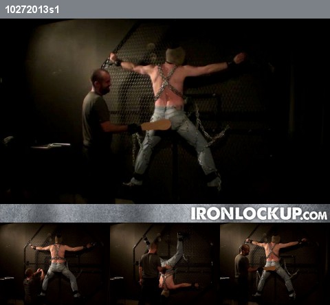 Securely confined in a straight-jacket, the prisoner has no chance of escape from the start. And he’s naked from the waist down so his cock hangs out ready to be manhandled. Sir Pan lays the prisoner flat on the gurney and his cock goes hard immediately. He slowly prepares to raise the prisoner into the air where he will be at the full mercy of Sir Pan’s devious whims.