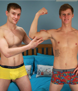 This is a shoot where best mates Jaden and Ben come even further along their explorations, it starts with a bit of teasy wanking and before you know it they have both sucked their first cocks and naughty Chris is enjoying teaching the Essex lads a thing or two! A little wanking and sucking practice later and Chris is fingering Ben’s hairless hole and shoves his big fat uncut cock pretty fast in Ben’s virgin hole. All he can do is pant and whimper and enjoy his pain and pleasure sensation as his ass gets a right working out. Jaden then fucks Chris and Ben tops Chris in a great 3 boy sandwich! Looking at how much Jaden shoots he enjoyed himself, Chris explodes another massive amount and perhaps Ben’s sore ass stops him shooting quite like the other two! Click here to see the shoot